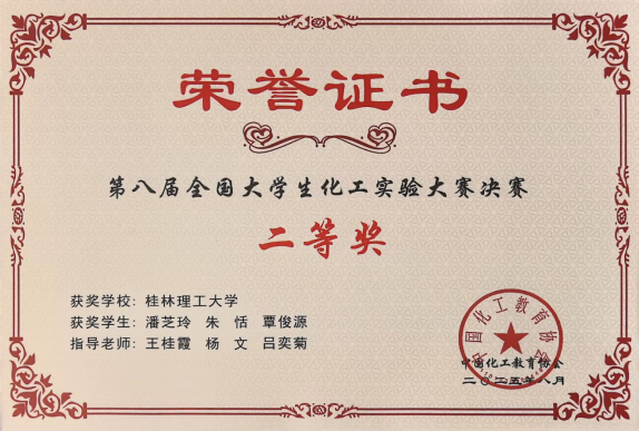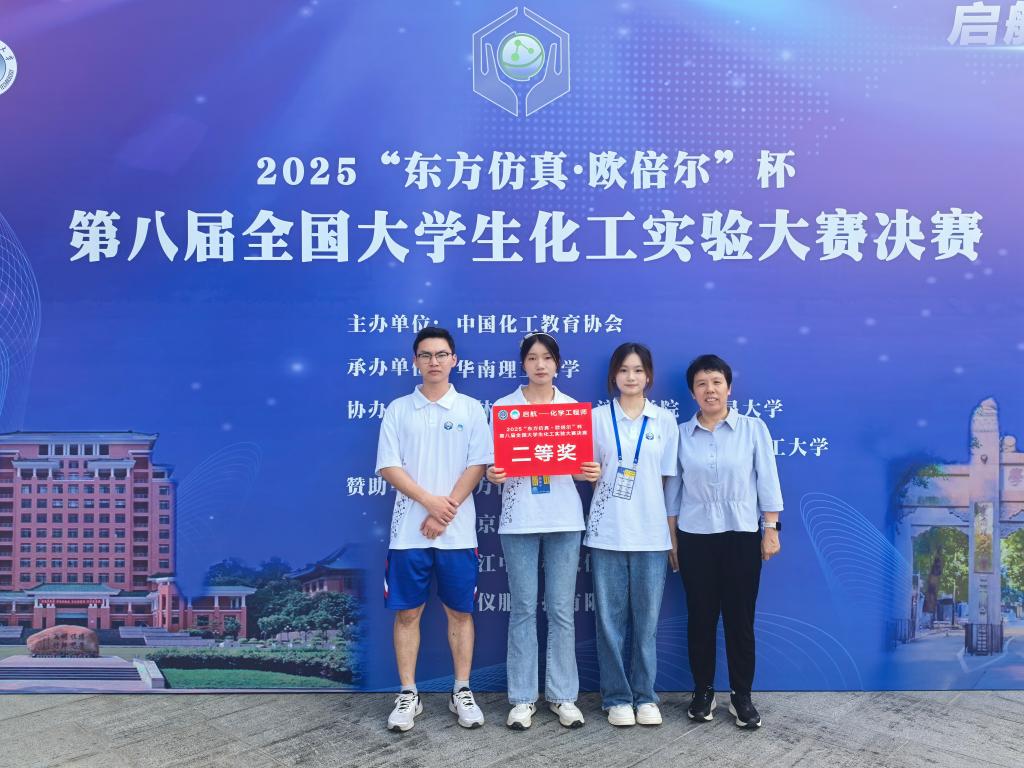 2025年8月8日至11日,由中国化工教育协会、教育部高等学校化工类专业教学指导委员会主办的“东方仿真·欧倍尔”杯第八届全国大学生化工实验大赛总决赛在华南理工大学顺利举行。本届大赛以“启航—化学工程师”为主题,覆盖全国六大赛区366所高校、2400余支队伍,经分区赛选拔,84支精英队伍晋级总决赛。 我院化工23级本科生潘芝玲、朱恬、覃俊源三位同学,在指导老师的悉心指导下,最终获得全国二等奖的优异成绩,另外,我校作为西南赛区承办单位获得了最佳组织奖。 图1:全国总决赛二等奖证书 图2:华南理工大学比赛现场 图3:颁发必赢中国官方网站优秀组织奖 (一审:王桂霞; 二审:马文硕;三审:何方 )