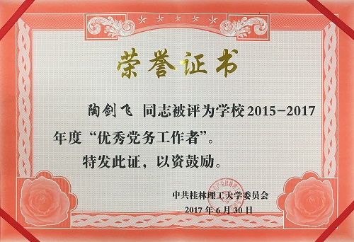 导航痕迹 当前位置: 首页 >> 新闻资讯 >> Bwin必赢新闻 >> 正文 我院部分党员在学校“庆祝中国共产党成立96周年主题党日活动暨先进表彰大会“获得表彰 作者:李冲 发布日期:2017-07-02 浏览次数: 6月30日下午,我校在屏风校区体育馆三楼举行庆祝中国共产党成立96周年主题党日活动暨先进表彰大会。校党委书记张学洪在会上讲话,校长解庆林主持会议,党委副书记王赣华宣读表彰决定,党委副书记、纪委书记孙宁宣布学校党风廉政建设优秀成果评选结果。校领导梁福沛、曾繁荣,全体教工党员,学生党员代表,民主党派和无党派人士代表参加会议。 会上,学校对获得2015-2017年度先进的10个基层党组织、45名优秀共产党员、10名优秀党务工作者,以及14个党风廉政建设优秀成果获奖单位、11个庆祝建党96周年主题党日活动获奖单位进行表彰。我院陶剑飞副书记获得“优秀党务工作者”荣誉称号;李霞、何宗辉获得“优秀共产党员”荣誉称号。 荣誉证书(一) 荣誉证书(二) 荣誉证书(三) 上一条:我院召开2017年春季末学期班主任工作会议 下一条:我院何宗辉老师参加高校创业指导师专题培训班