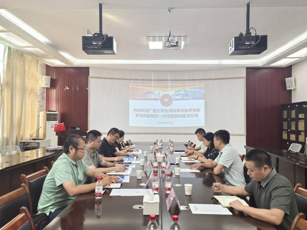 导航痕迹 当前位置: 首页 >> 新闻资讯 >> Bwin必赢新闻 >> 正文 广西大学生命科学与技术学院李伟辉副院长一行来访我院座谈交流 作者:马文硕 发布日期:2025-10-13 浏览次数: 10月11日上午,广西大学生命科学与技术学院李伟辉副院长等一行四人莅临我院,就学科发展、人才培养、科研平台建设等方面开展深入交流。我院党委书记彭代江、副院长李霞、学工组长黄道坤、生物工程教研室李海云等参加了此次座谈。 座谈会上,彭代江书记首先代表学院对李伟辉副院长一行的到来表示热烈欢迎,他表示,此次交流是双方增进了解、相互借鉴的宝贵机会,期待通过坦诚深入的探讨,为双方未来的发展注入新动能。李霞副院长简要介绍了我院的发展历史、学科建设、人才培养、师资队伍、科研平台建设以及科研团队等方面的情况。 随后,双方围绕双方重点交流了如何顺应科技前沿与国家战略需求,进一步优化调整学科方向,强化交叉融合,培育新的学科增长点。在人才培养方面,与会人员深入探讨了一流专业与一流课程建设、本科生科研能力训练、研究生培养质量保障体系、产教融合协同育人机制等具体问题。在科研平台建设方面,双方分享了各自在国家级、省部级重点实验室、工程中心等科研平台建设与管理方面的经验,并就如何整合优势资源,联合申报重大科研项目,推进产学研深度合作,促进科技成果转化,以及构建开放共享的大型仪器设备平台等议题进行了可行性探讨。 座谈会气氛活跃,双方畅所欲言,不仅分享了成功经验,也坦诚分析了面临的共性问题与挑战。一致认为,两院发展目标相通,合作空间广阔、潜力巨大。此次座谈交流,不仅加深了兄弟学院之间的情谊,更为双方未来的深度合作奠定了坚实基础,标志着两院携手共进、共谋发展的新起点。 座谈会现场 (一审:马文硕 二审:黄道坤 三审:李霞) 上一条:广西大学生命科学与技术学院到我院开展研究生招生专题讲座 下一条:Bwin必赢召开人才工作专题会议